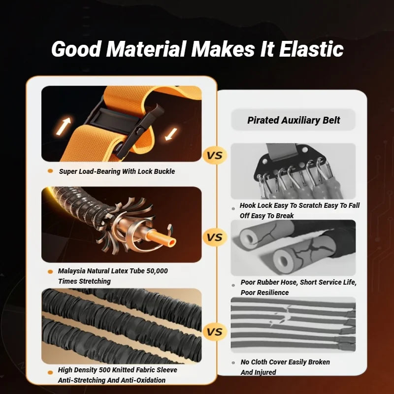 Superb Craftsmanship:Â The metal steel buckle will be stronger, durable, and safer. The cloth cover will slow down the oxidation speed of the latex tubes and protect our body from injury. The adjustable steel buckle, which can adjust the length of the webbing, is firmer and more durable.